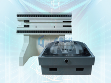 礦物鑄件又稱“人造大理石”“樹脂混凝土”,是用天然石碎料/鵝卵石、黃砂等為骨料,改性環氧樹脂等為膠凝材料,加入部分填料和外加劑經過混合攪拌、振動密實而形成的一種新型高分子復合材料。其具有的復雜外型的成型能力和整合能力,高精度,良好的吸震性、熱穩定性及耐腐蝕性等優勢。
